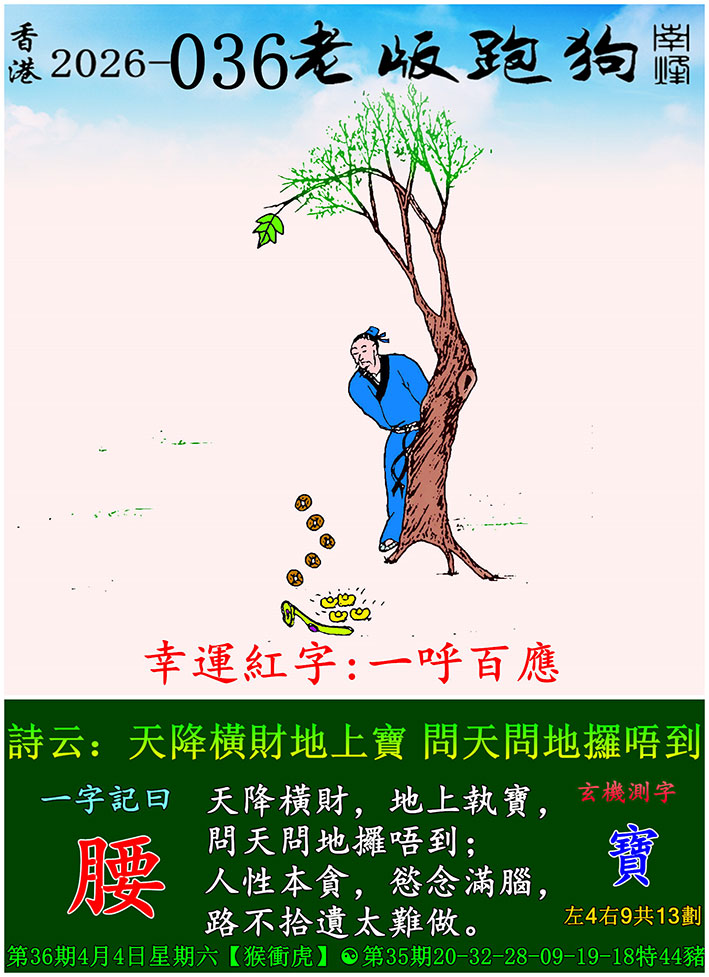 主题 : 036期老版跑狗一字記之曰:【腰】 玄機測字:《寶》