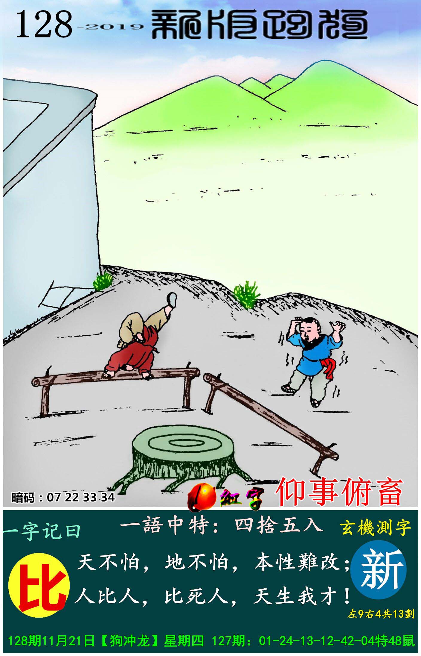 主题 : 128期:新版跑狗一字記之曰【比】玄機測字:《新》