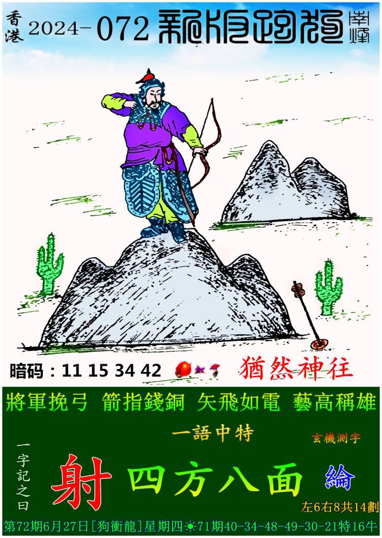072期:新版跑狗一字記之曰【射】 玄機測字:【綸】