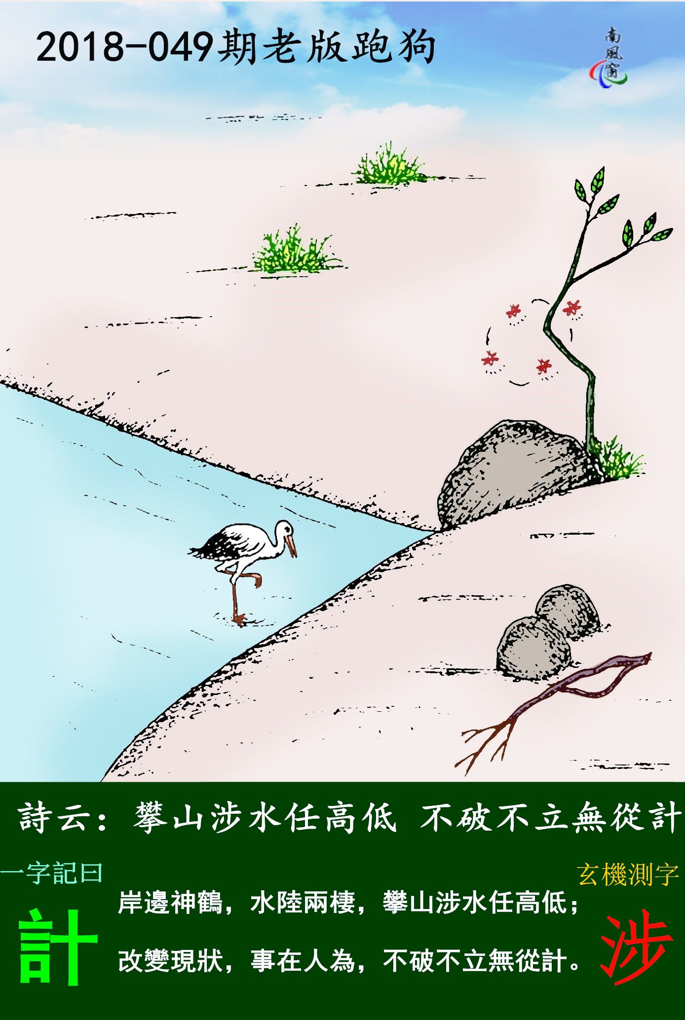 049期:老版跑狗一字記之曰:【計】玄機測字《涉》