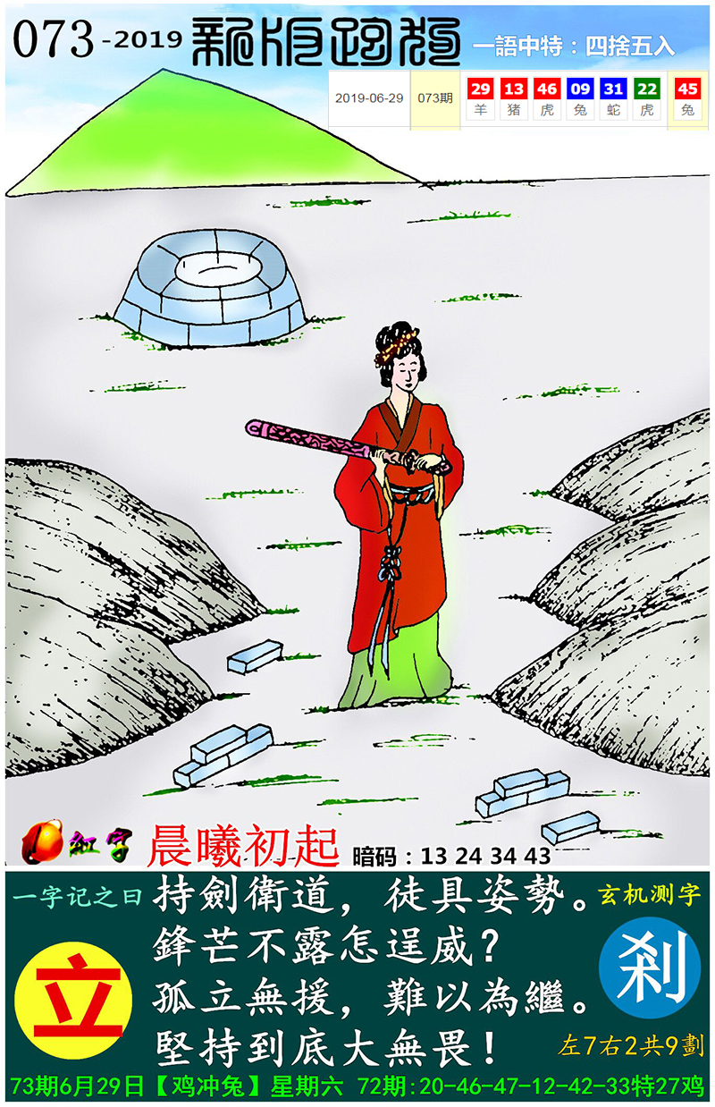 110期新版跑狗一字記之曰:【劍】
