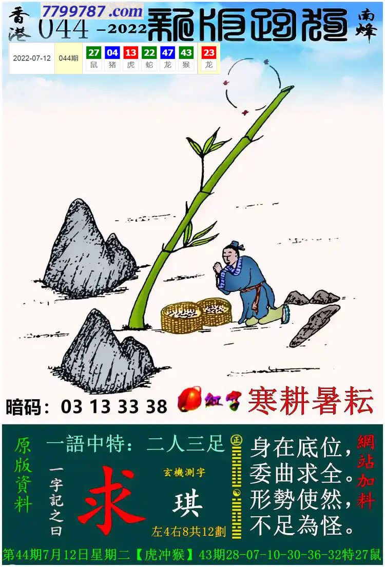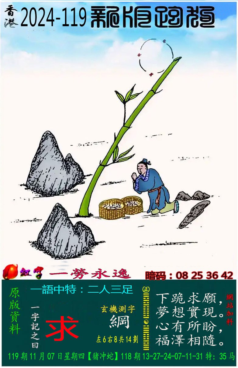 119期:新版跑狗一字記之曰【求】 玄機測字:【綱】