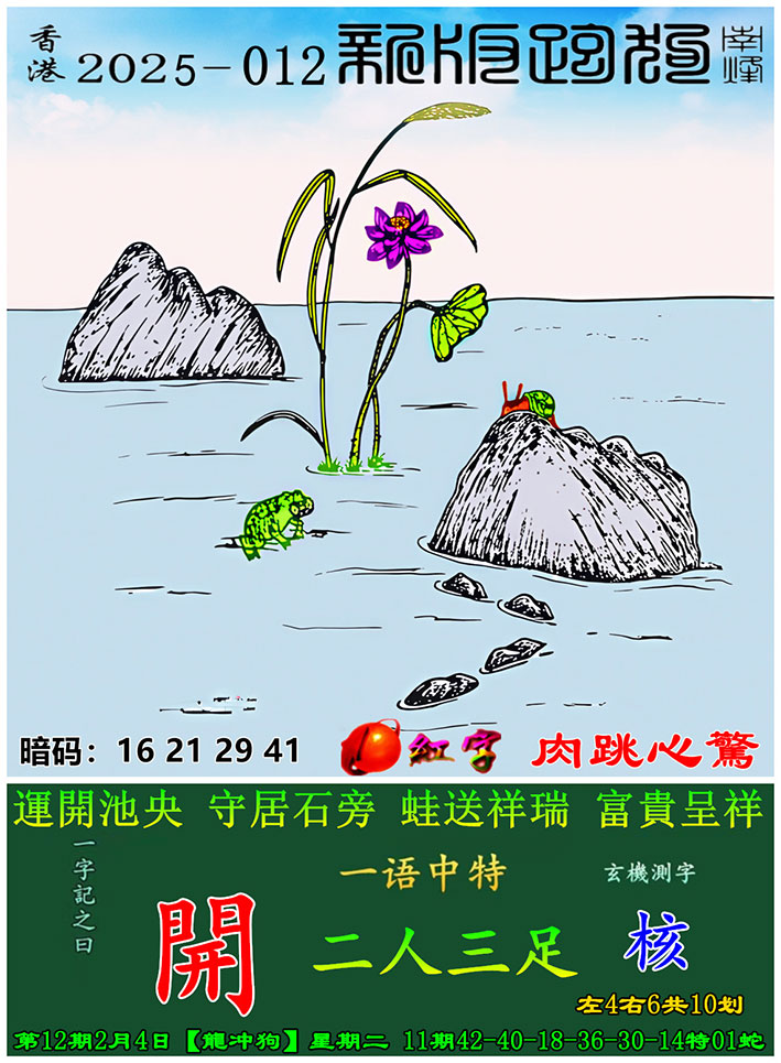 012期:新版跑狗一字記之曰【開】 玄機測字:【核】