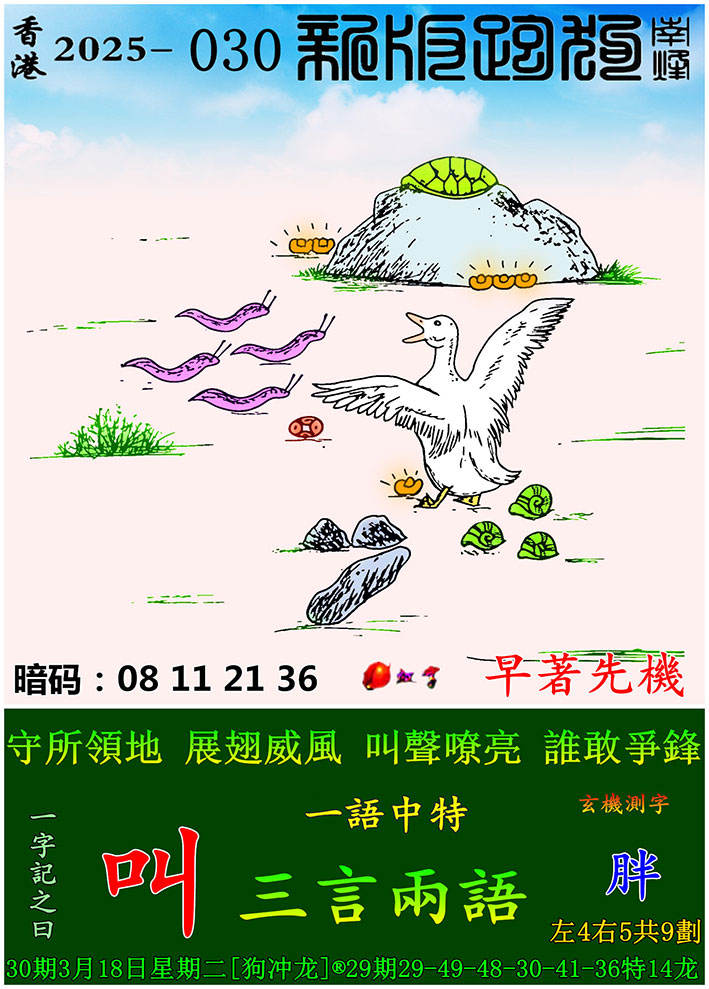 主题 : 030期:新版跑狗一字記之曰【叫】 玄機測字:【胖】