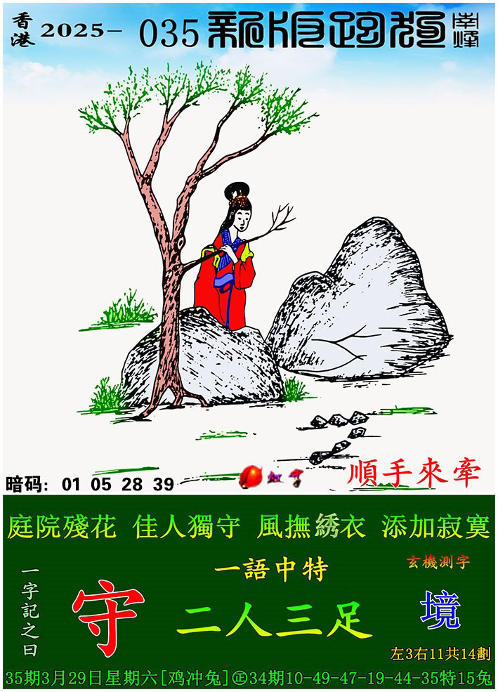 035期:新版跑狗一字記之曰【守】 玄機測字:【境】