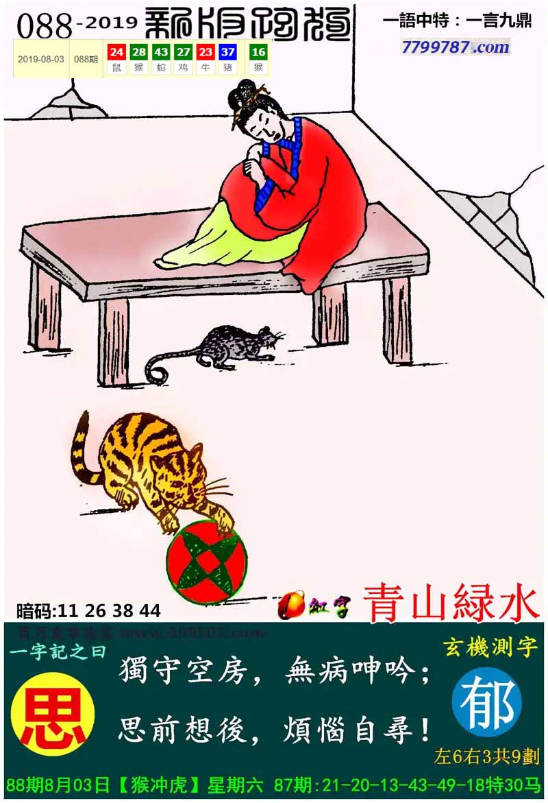 100期:新版跑狗一字記之曰【玩】 玄機測字:【胡】