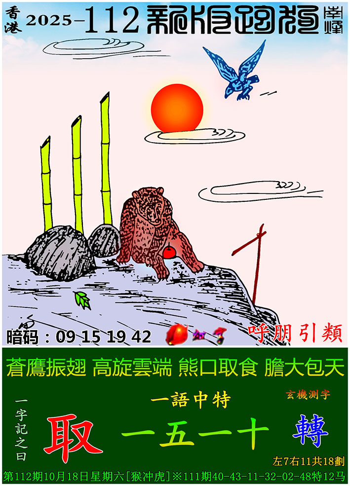 主题 : 112期:新版跑狗一字記之曰【取】 玄機測字:【轉】