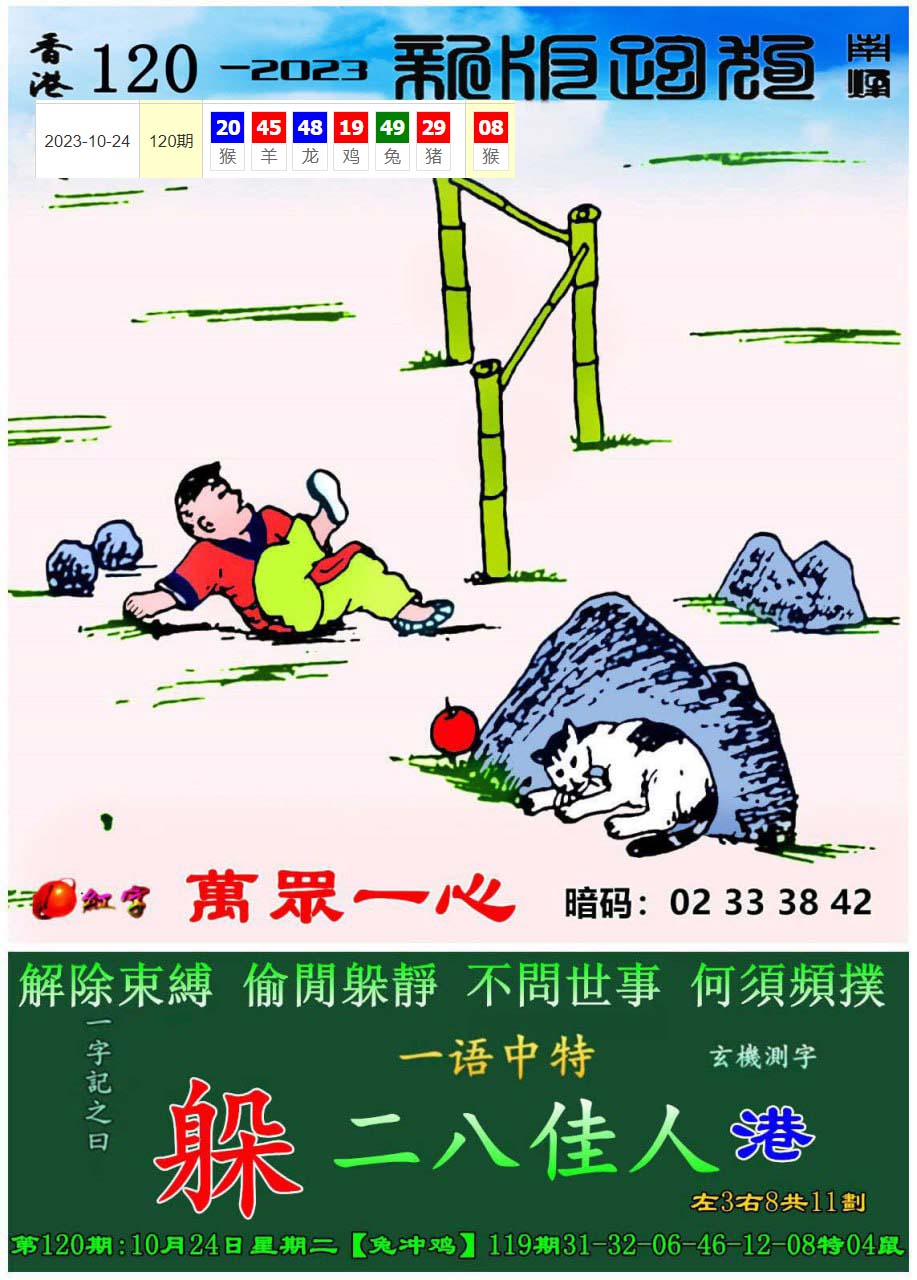 主题 : 123期:新版跑狗一字記之曰【躲】 玄機測字:【戲】