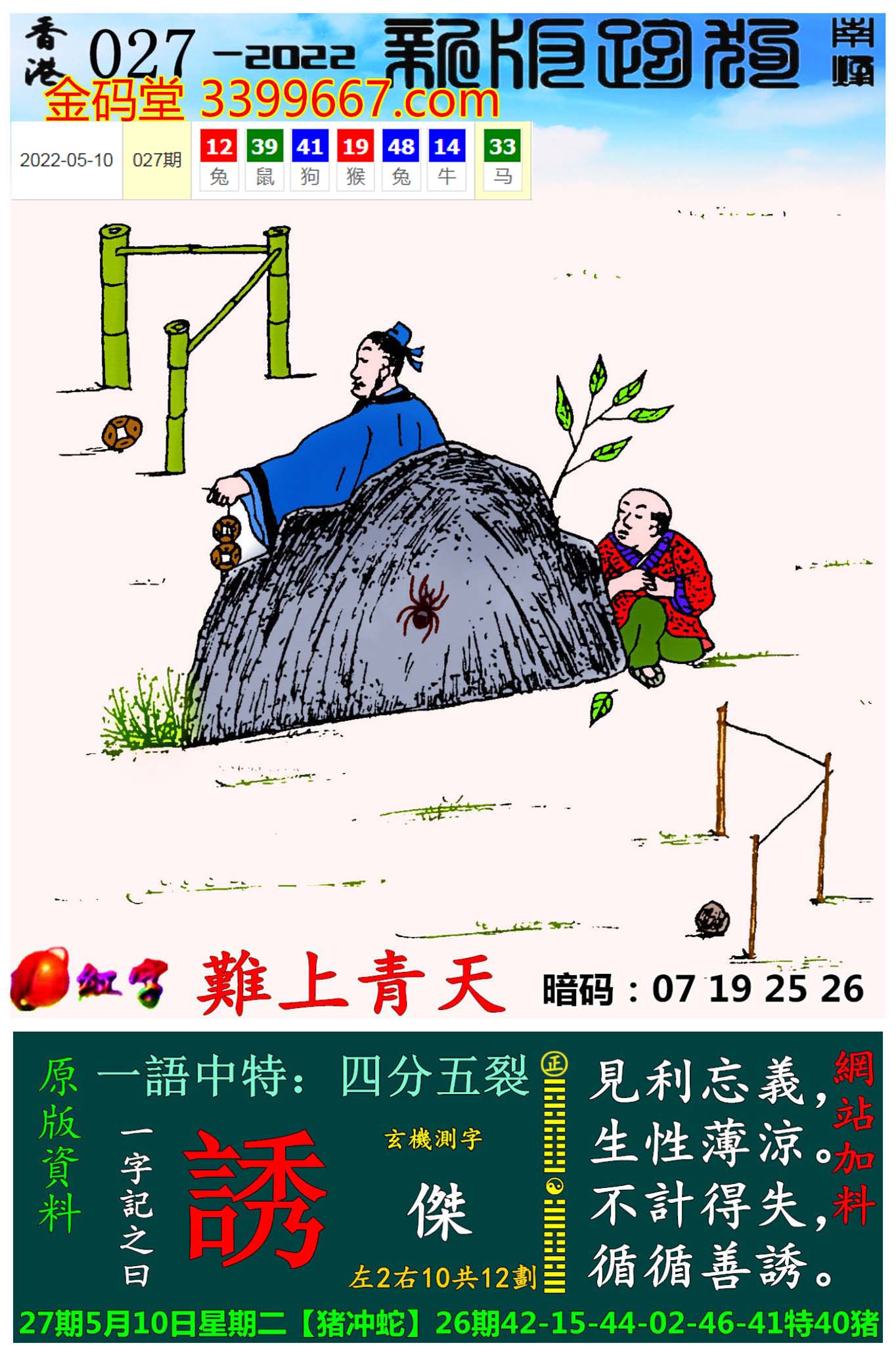 011期:新版跑狗一字記之曰【誘】 玄機測字:【溶】