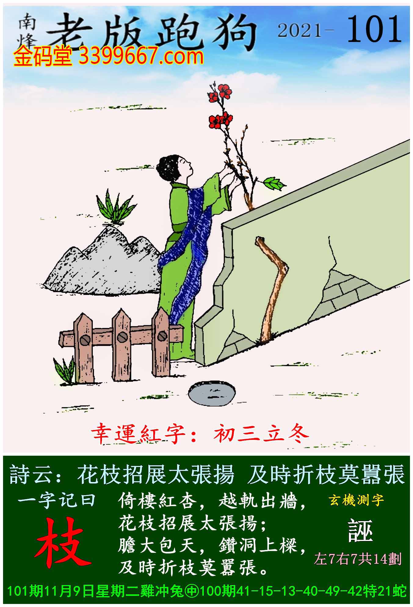 101期老版跑狗一字記之曰:【枝】