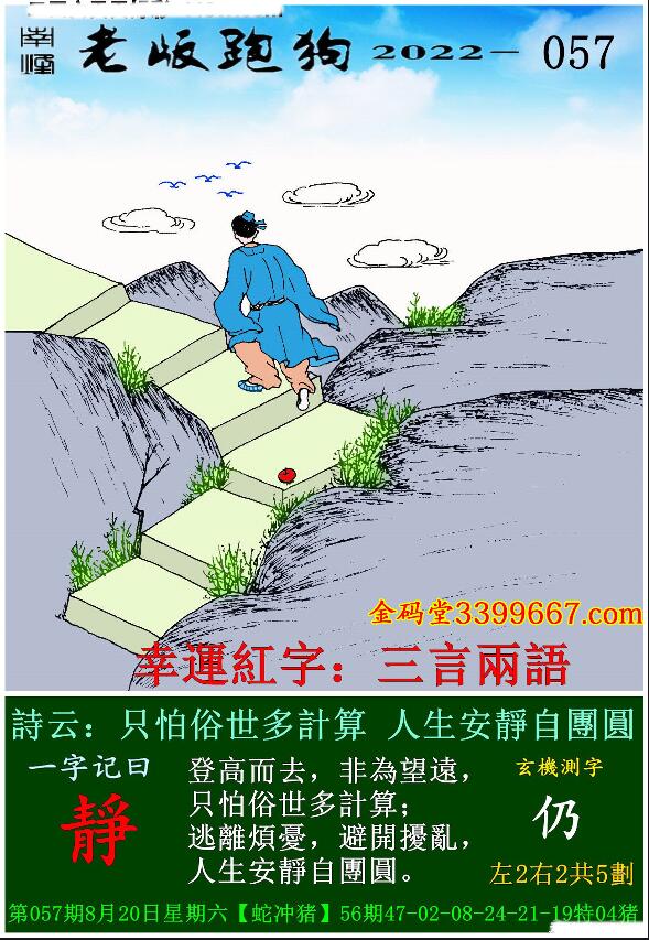主题 : 057期老版跑狗一字記之曰:【靜】玄機測字:《仍》