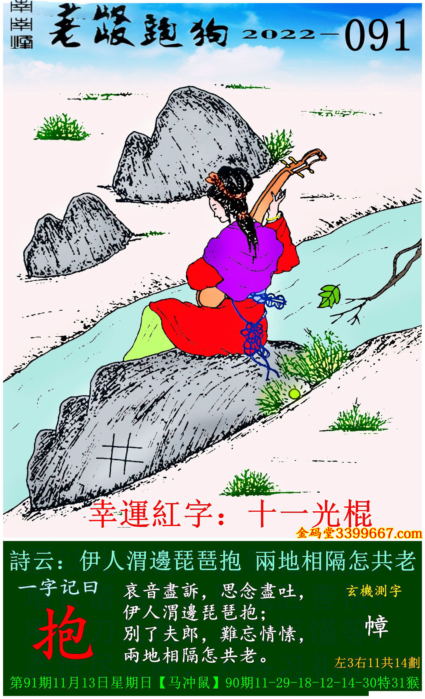 091期老版跑狗一字記之曰:【抱】玄機測字:《幛》