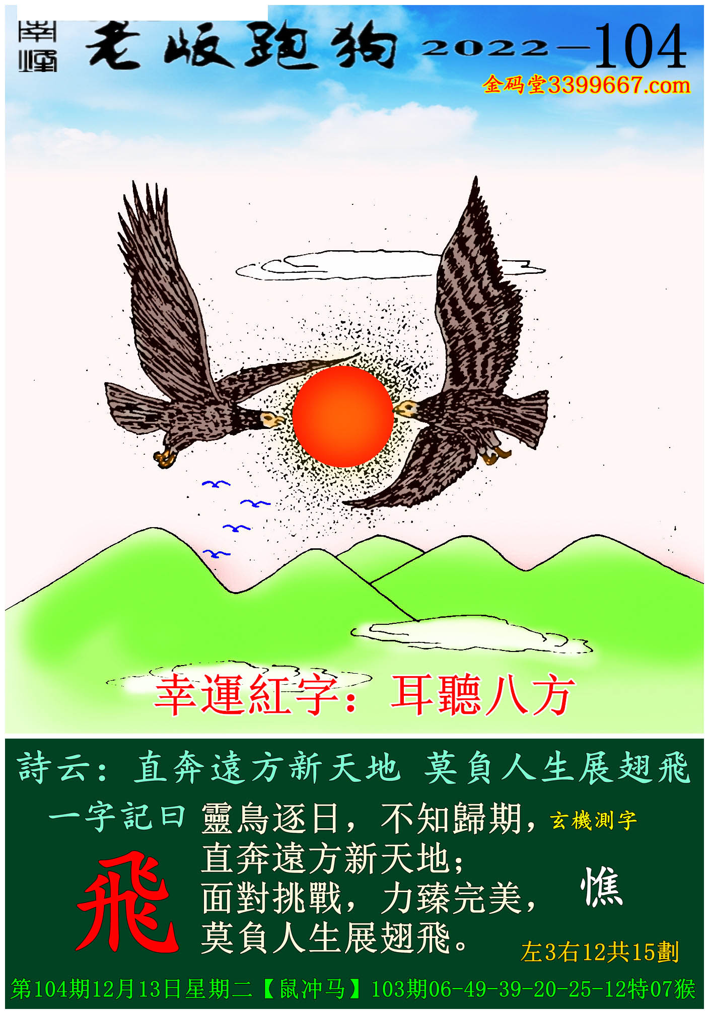 104期老版跑狗一字記之曰:【飛】