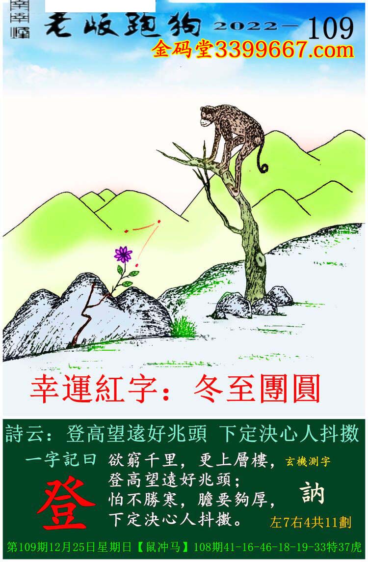 109期老版跑狗一字記之曰:【登】