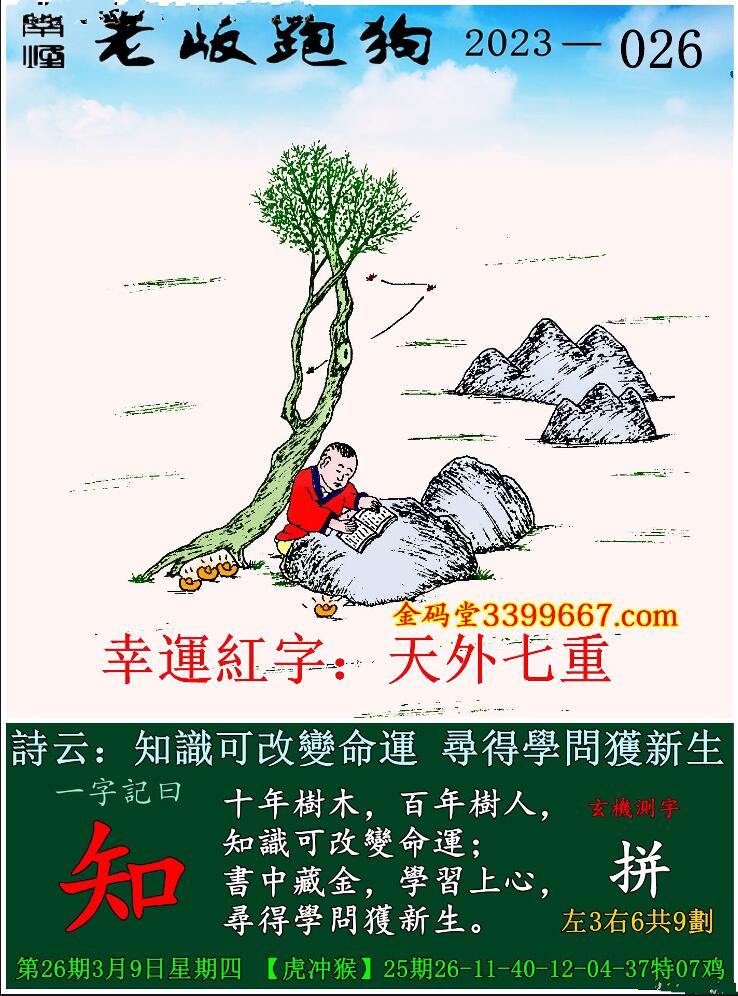 026期老版跑狗一字記之曰:【知】