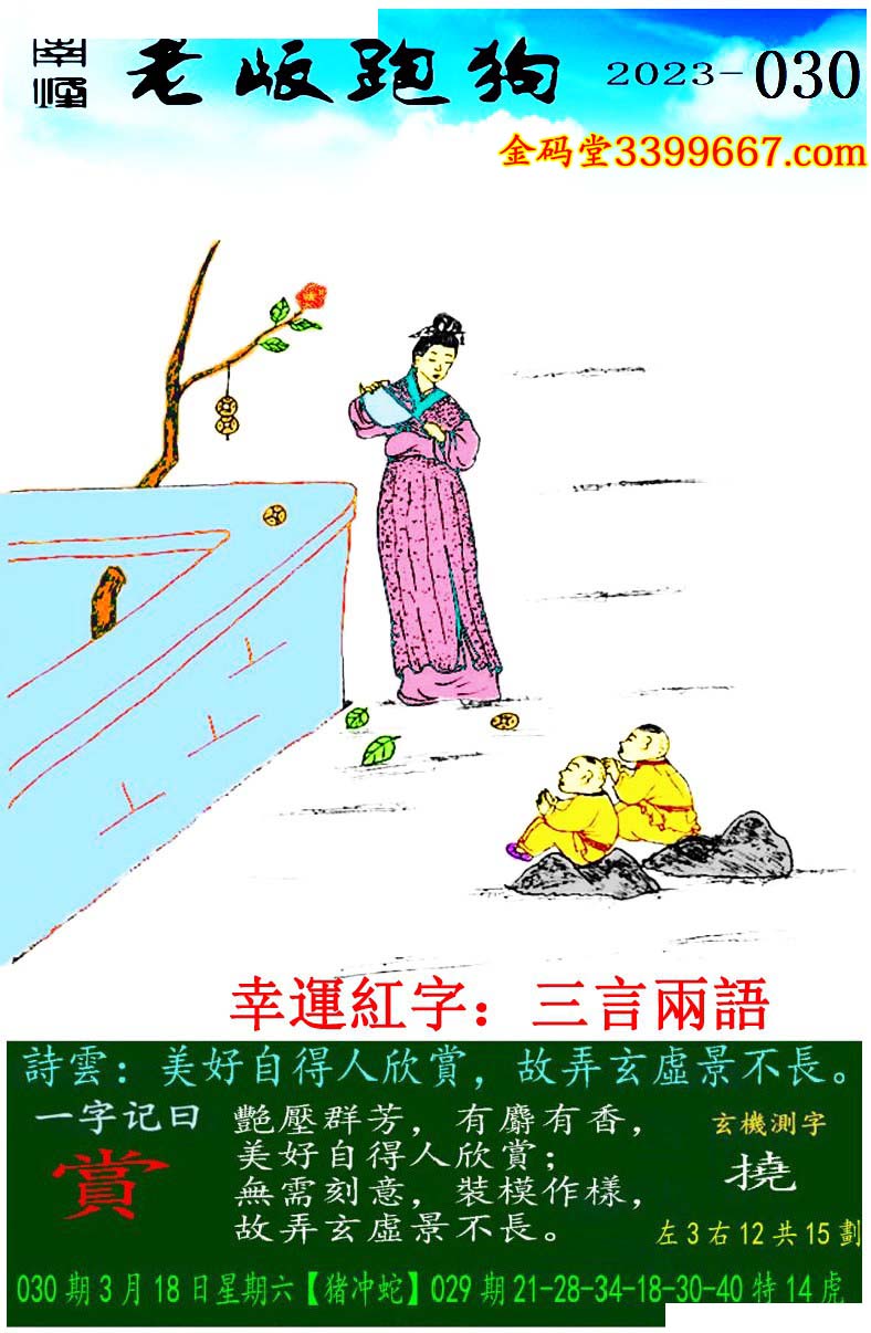 030期老版跑狗一字記之曰:【賞】
