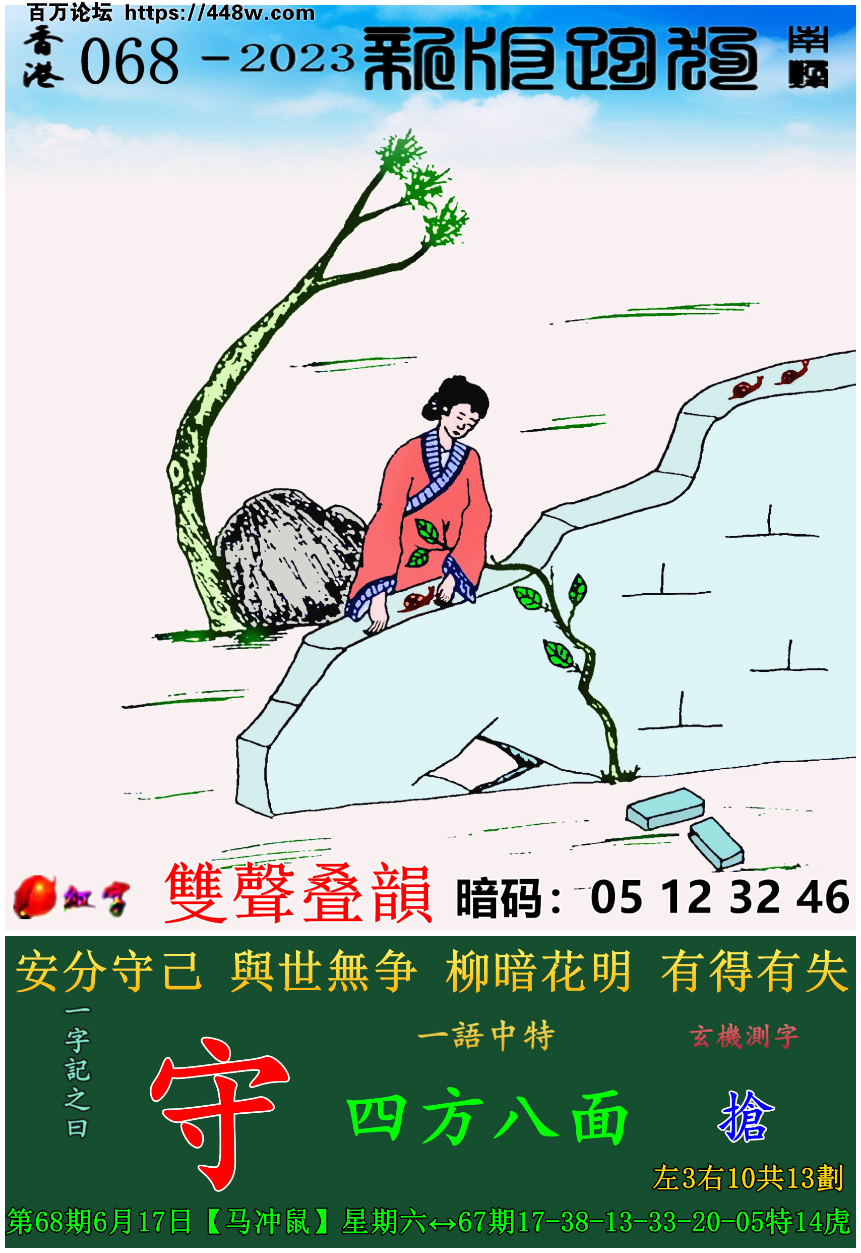068期老版跑狗一字記之曰:【拖】 玄機測字:《摎》