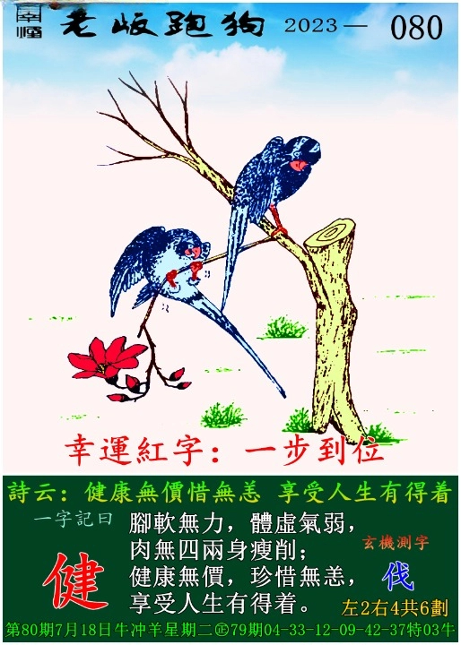 080期老版跑狗一字記之曰:【健】 玄機測字:《伐》