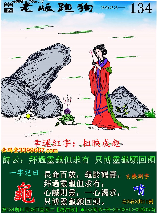 主题 : 134期老版跑狗一字記之曰:【龜】 玄機測字:《啃》