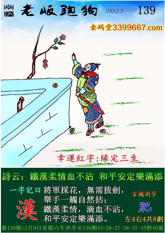 主题 : 139期老版跑狗一字記之曰:【漢】 玄機測字:《肥》