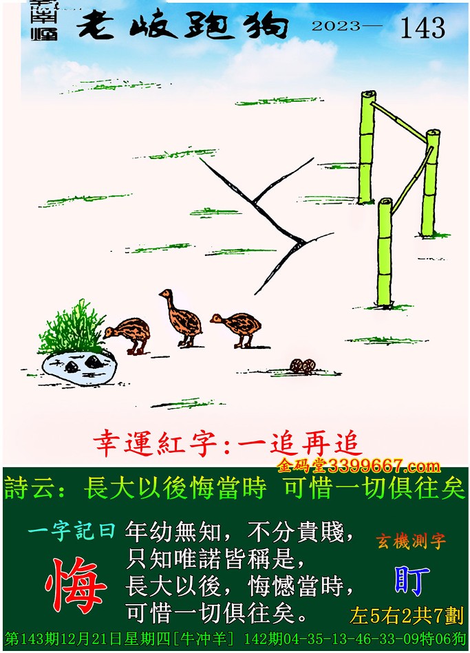 主题 : 143期老版跑狗一字記之曰:【悔】 玄機測字:《盯》