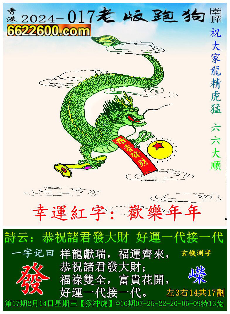 017期老版跑狗一字記之曰:【發】