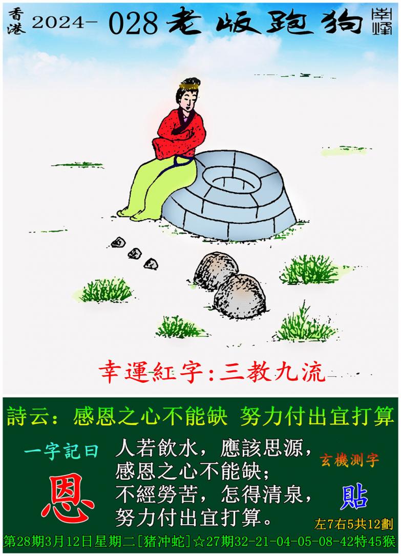 主题 : 028期老版跑狗一字記之曰:【恩】 玄機測字:《貼》