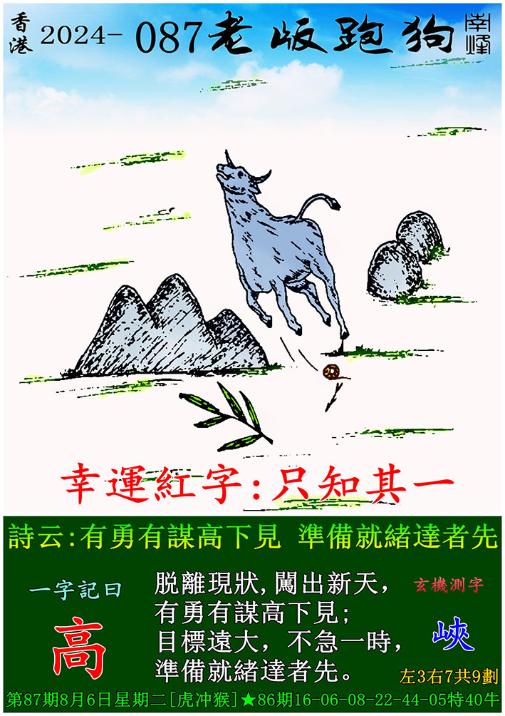 087期老版跑狗一字記之曰:【高】 玄機測字:《峽》