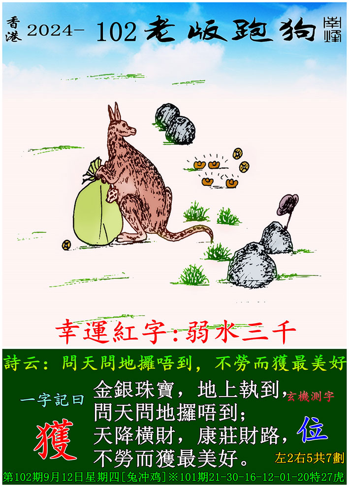 102期老版跑狗一字記之曰:【獲】