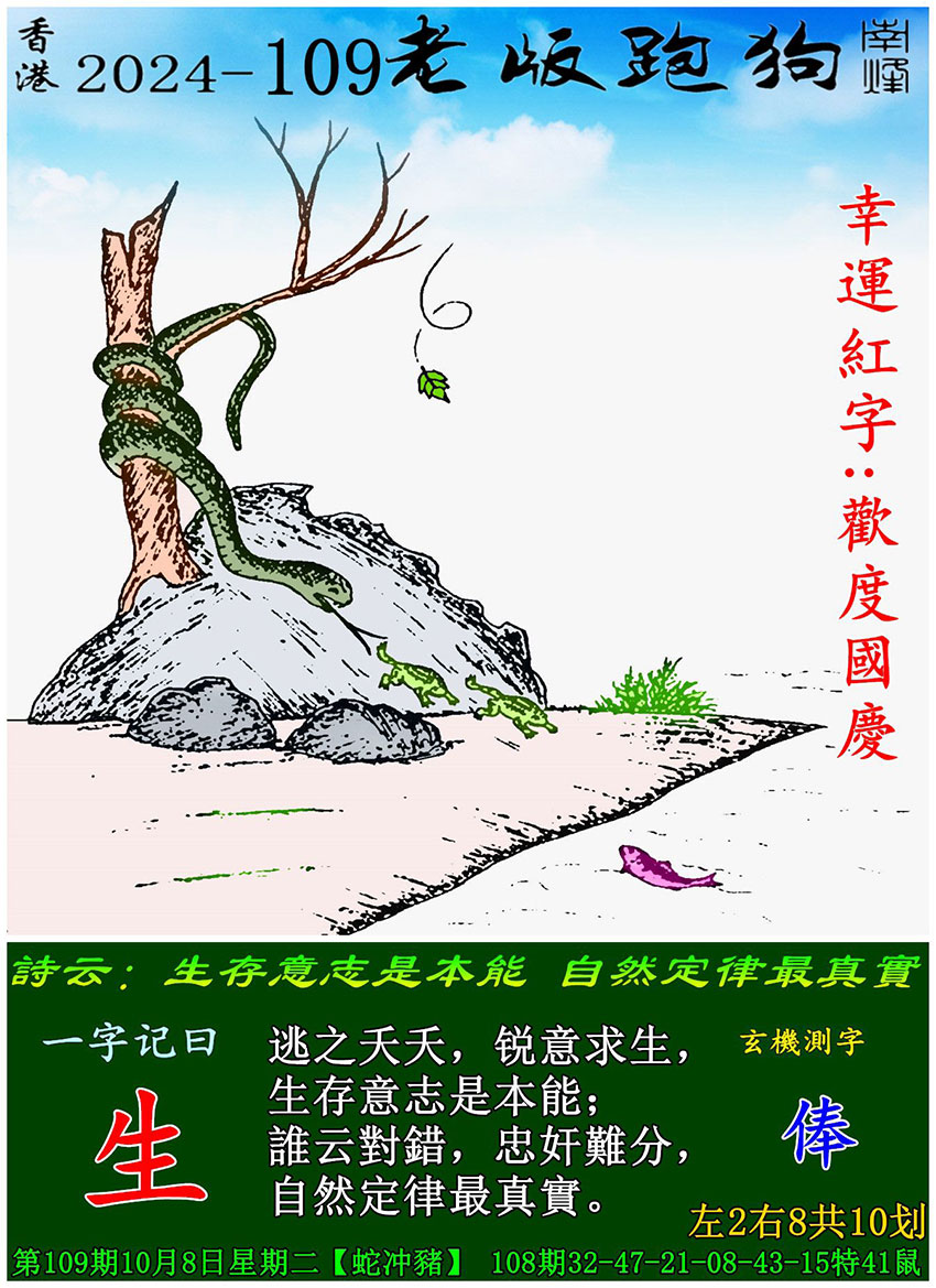 主题 : 109期老版跑狗一字記之曰:【生】 玄機測字:《俸》