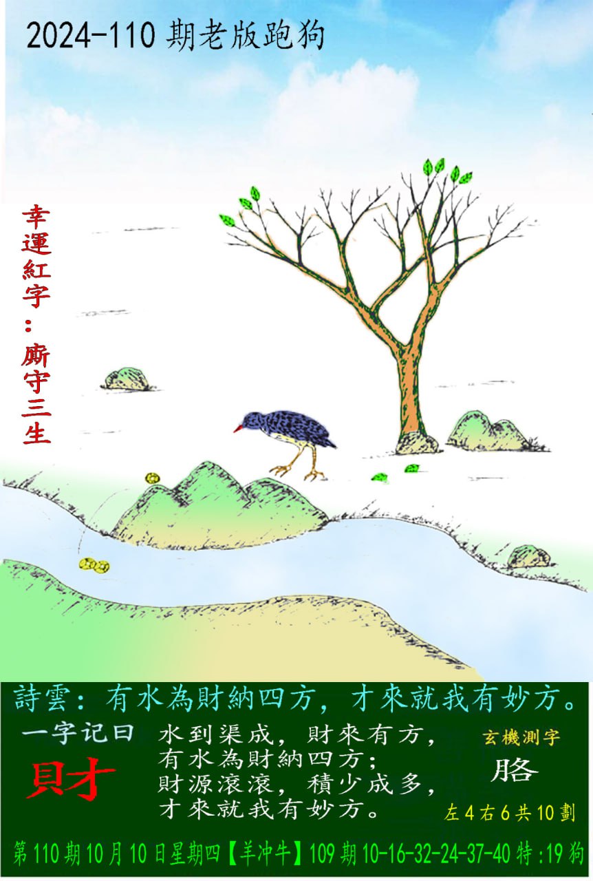 主题 : 110期老版跑狗一字記之曰:【財】 玄機測字:《胳》