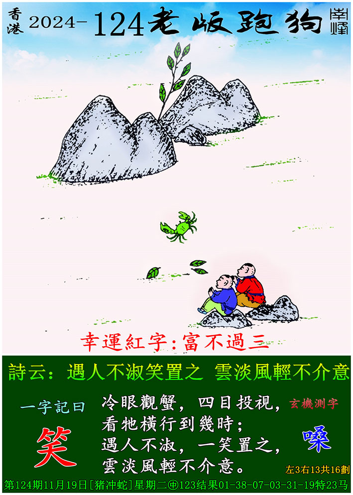 124期老版跑狗一字記之曰:【笑】