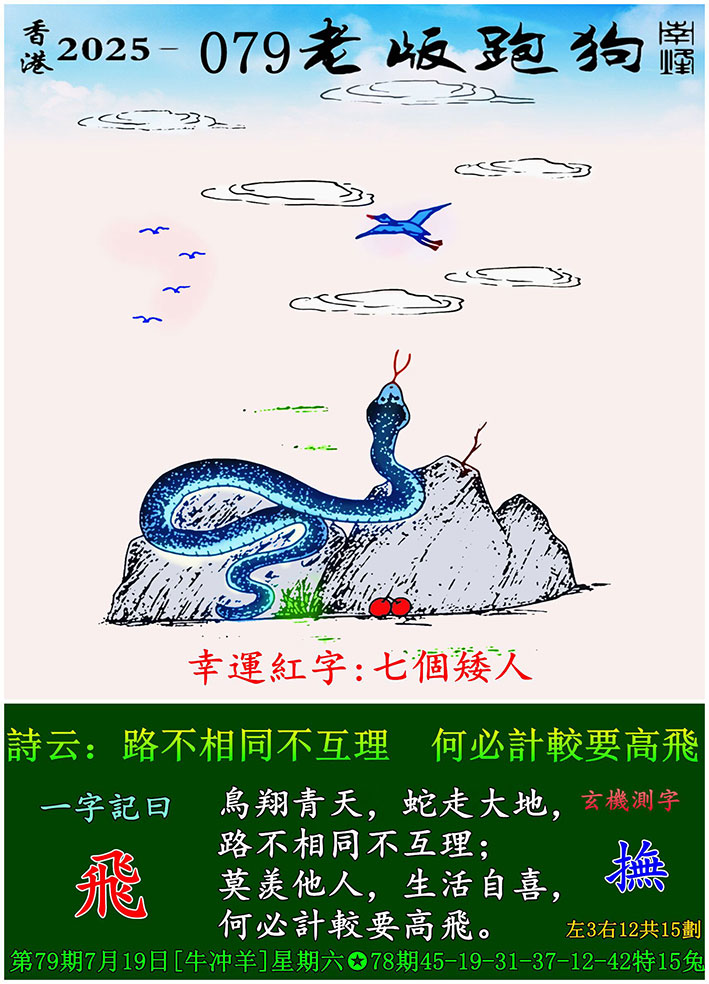主题 : 079期老版跑狗一字記之曰:【飛】 玄機測字:《撫》
