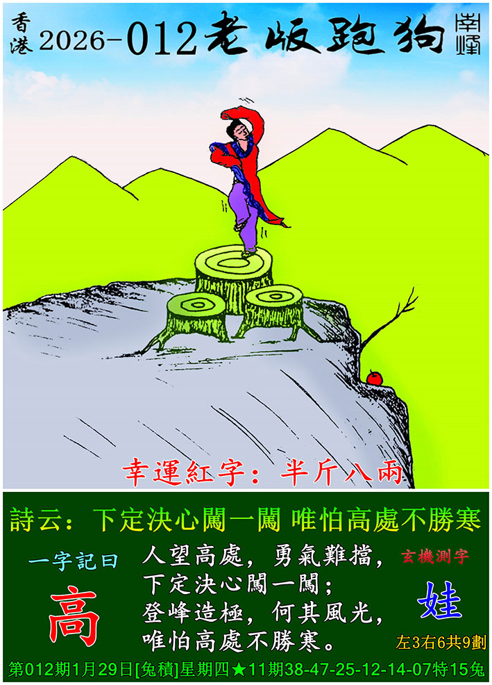 012期老版跑狗一字記之曰:【高】 玄機測字:《娃》
