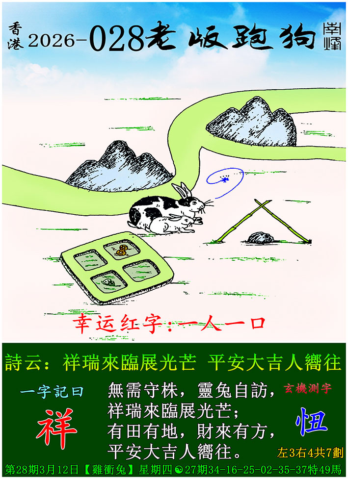 028期老版跑狗一字記之曰:【祥】