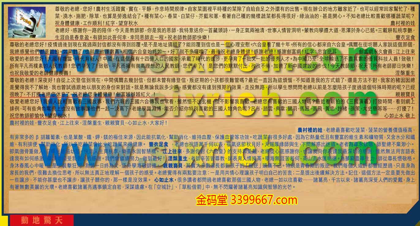 【3】.尊敬的老總您好!疫情過後到現在寫過兩封信都沒有得到回覆。是不是地址搞錯了?能回覆到信也是一個心理安慰。六he皇看了幾十年。所以的信心都來自六he皇。偶爾在街坊聽人家說這個那個,我總感覺他們都是錯的。如果對了,也就是他運數高。相信六he皇始終如一。好了就不多囉嗦了,最後祝老總身體健康!感謝老總!感謝創富網!紅字:忠言逆耳    創富網永久會員:江上往來