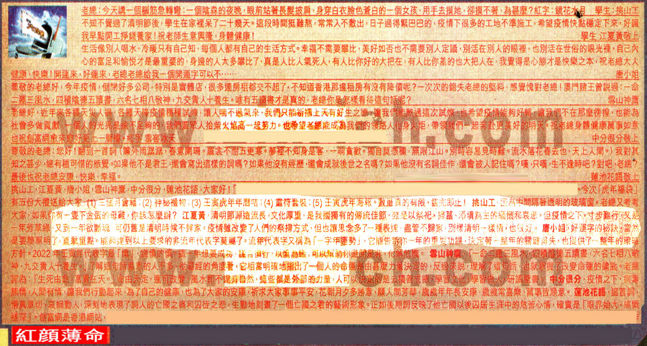 【5】.老總好,近年來各種天災人福,各種天降疫情種種試煉,讓人喘不過氣來,我們只能訴禱上天有好生之德,讓我們能熬過這次試煉,也希望疫情能夠好轉,讓我個不在那麼傍徨,也能為社會多做貢獻,一個人的光亮是道不足夠的,我們要眾人拾柴火焰高一起努力。也希望老總能成為我們的領路人化身火炬,帶領我們一起變赴更美好的明天。祝老總身體健康萬事如意也祝創富網愈來愈好更上一層樓。紅字 雪窖冰天 中分很分敬上