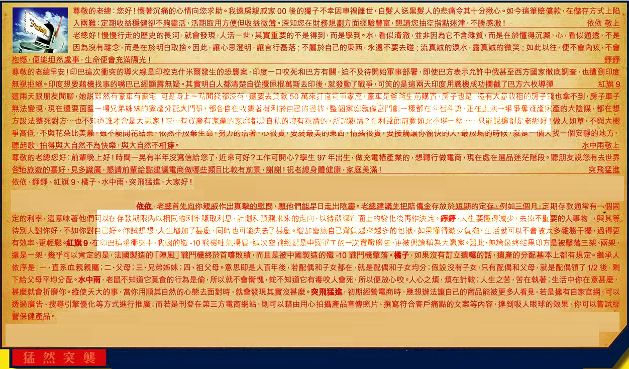 【1】.尊敬的老總:您好!懷著沉痛的心情向您求助。我遠房親戚家00後的獨子不幸因車禍離世,白髪人送黑髪人的悲痛令其十分揪心。如今這筆賠償款,在儲存方式上陷入兩難:定期收益穩健卻不夠靈活,活期取用方便但收益微薄。深知您在財務規劃方面經驗豐富,懇請您抽空指點迷津,不勝感激! 依依 敬上